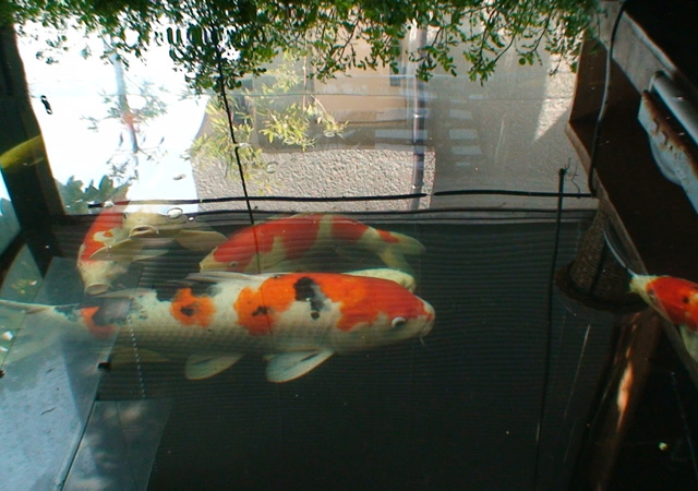 真冬でも10度を下らぬ為、魚たちは一年中えさがもらえる